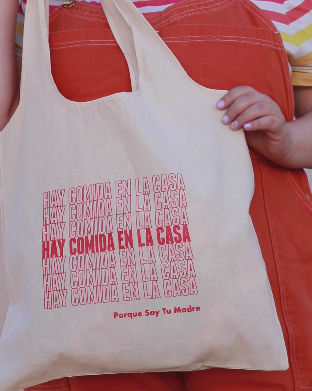 This reusable shopping bag is the perfect way to say "te quiero" to the matriarch in your family. It features the phrase "Hay Comida En La Casa," which means "There's food at home" in Spanish.